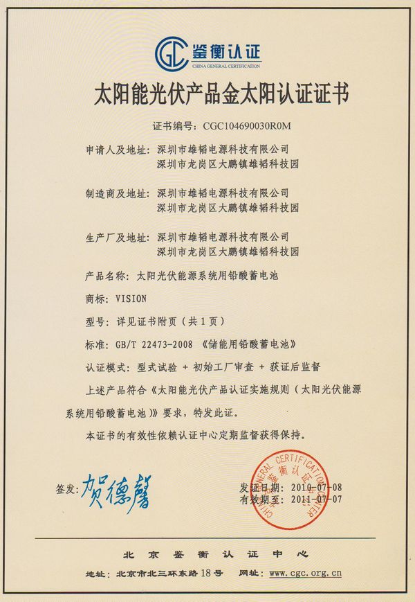 雄韬电源通过鉴衡金太阳论证